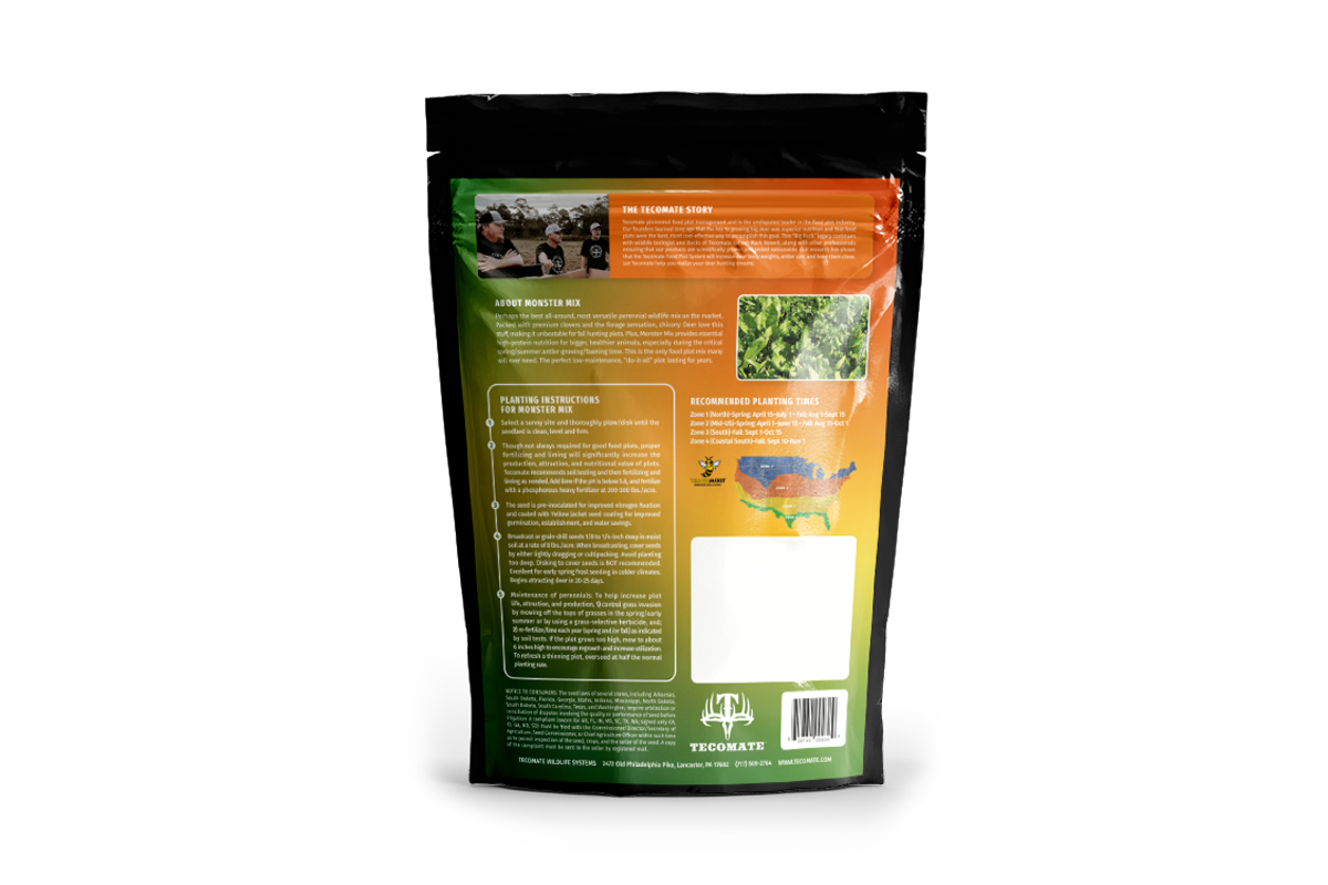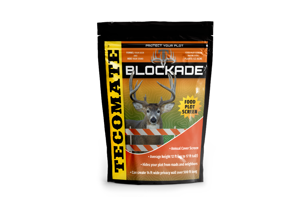 Tecomate has engineered the best food plot screening product on the market today! Use Blockade to shield your food plots from public roadways and neighboring properties, keeping wandering eyes out and the deer feeling safe within. Also, use it to conceal paths to tree stands, allowing your presence to go undetected. Blockade is made from a select blend of warm season annuals ranging in height, creating a visual and physical blockage from ground level up to 12 ft tall.
